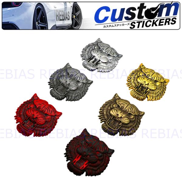 - 送料無料 【レッドブラック】 タイガー エンブレム 虎 猛虎 TIGER カスタム メタル ステッカー