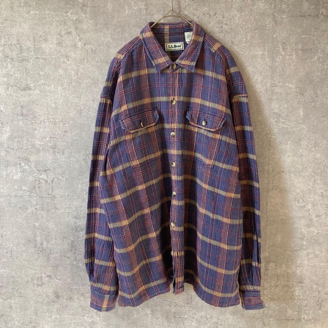 - L.L.BEAN 織物調生地 チェックシャツ 長袖 Lサイズ ヘリンボーン
