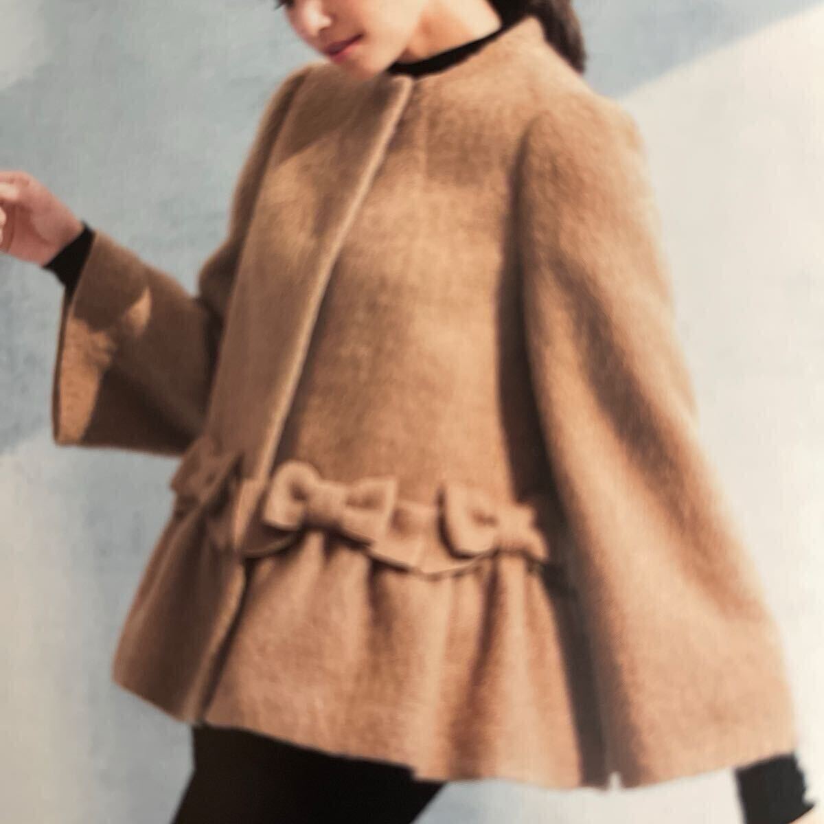 > 【未使用・タグ付き】エムズグレイシー カタログ掲載 シャギー/リボン/ペプラム/ショートコート アウター ベージュ 38