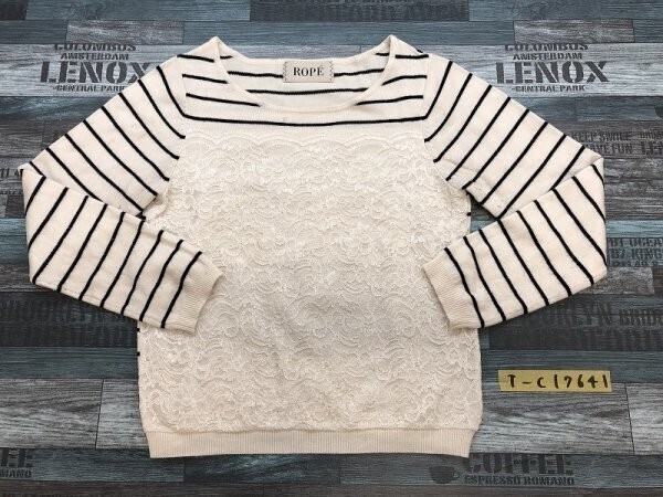 - ROPE ロペ レディース レース切替 ボーダー ニットセーター M 黒アイボリー