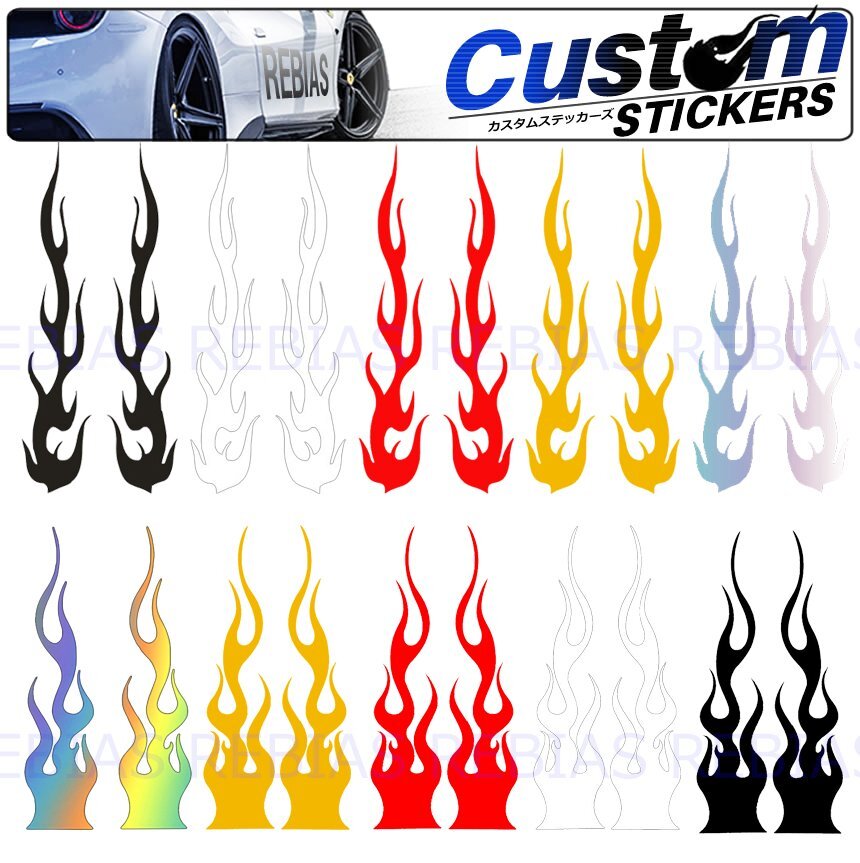 > 送料無料 【Aタイプホワイト】 ファイヤー パターン ステッカー 左右セット バイク ヘルメット カスタム フレイム FIRE