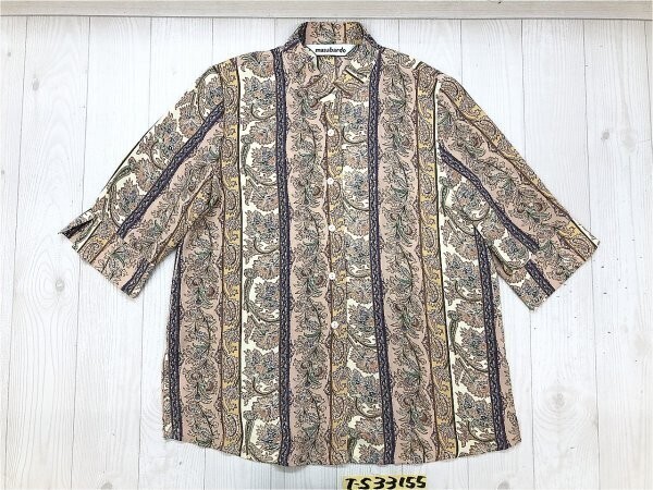 - masabardo レディース バンドカラー ペイズリー サイドスリット 五分袖ブラウス M ブラウン