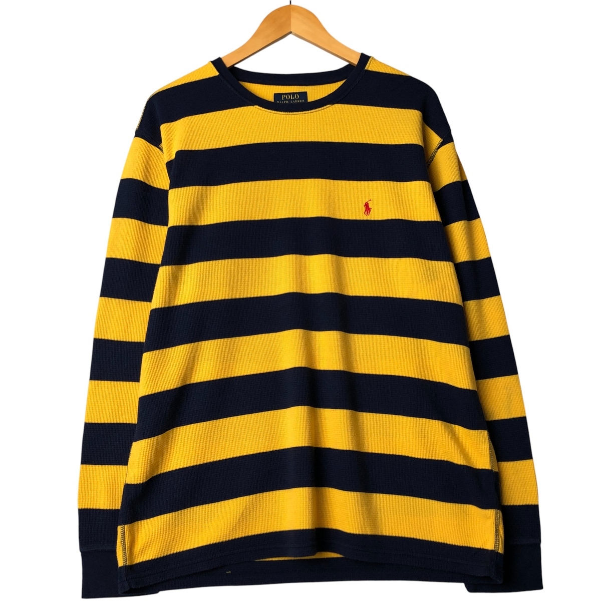 - 古着 ラルフローレン Ralph Lauren POLO RALPH LAUREN SLEEPWEAR ボーダー柄 サーマルロンT ワッフル メンズXXL相当 /eaa590247