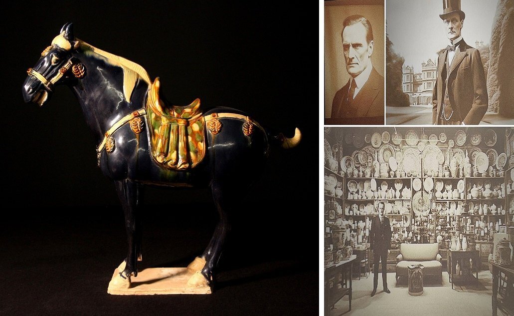 > 唐時代 唐三彩馬 高さ約51.5cm (検)三彩釉 置物 唐物 中国美術 骨董 古美術