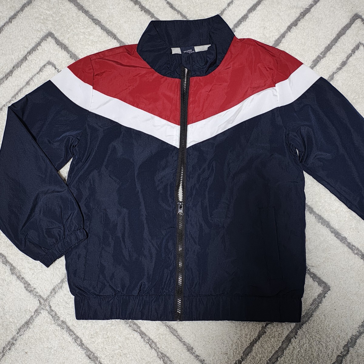 > 子供用 ウインドブレーカー ブルゾン ジャンパー ネイビー 赤白 140 ナイロンジャケット