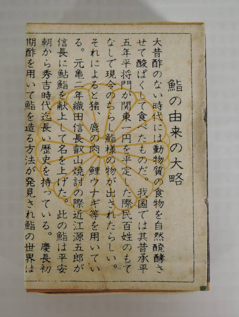 - ☆T09■マッチ箱・マッチ空き箱 菊寿し 「鮨の由来の大略」 箱:木製 引出し:紙製■高知県高知市