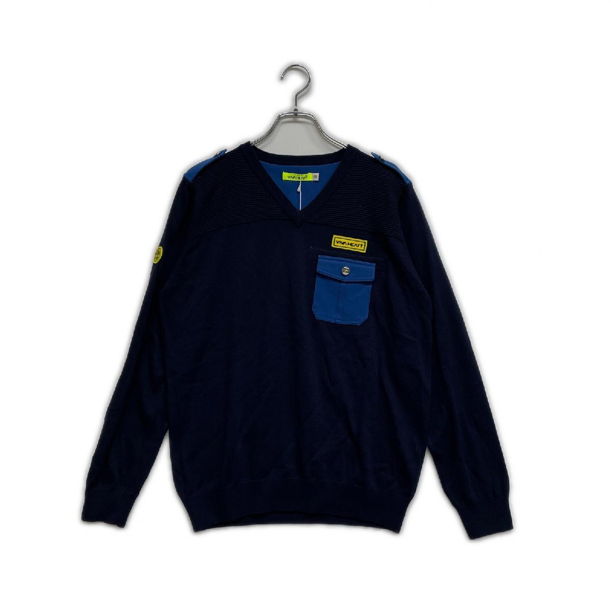 > coco【SALE】 未使用品 ビバハート メンズ セーター 50(L) 紺 長袖 Vネックニット ミリタリー風 レターパックプラス発送可 107987