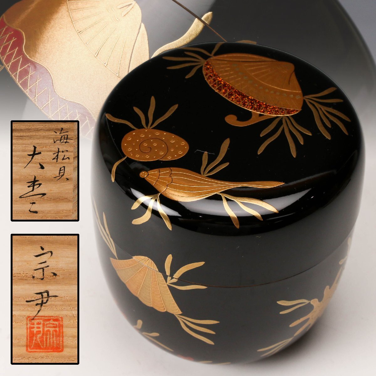 【佳香】中村宗尹 海松貝大棗 内銀溜 共箱 栞 茶道具 本物保証拍卖