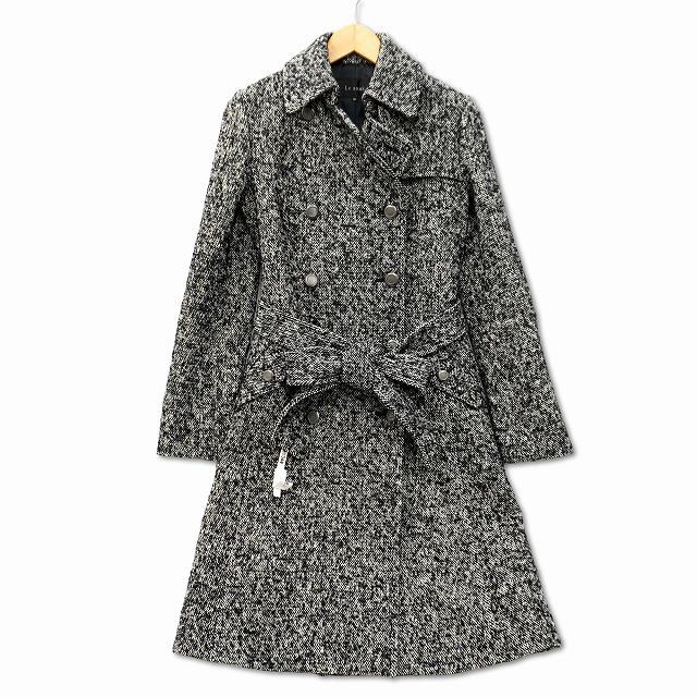 - ルスーク Le souk ツイード ベルト付き トレンチコート 36 ブラック レディース
