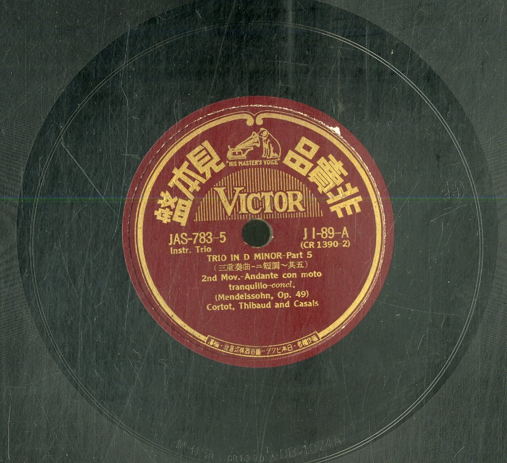 K00031783/12インチSP/アルフレッド・コルトー(Pf)/ジャック・ティボー(Vn)/パブロ・カザルス(Vc)「Mendelssohn / Trio In D Minor Part