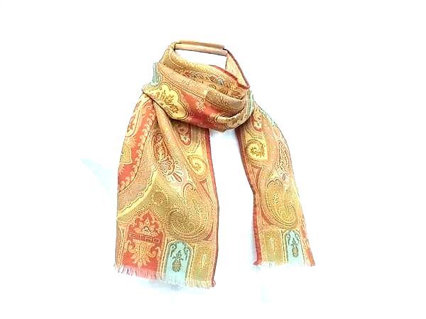 - 1円 ETRO エトロ ウール70%×シルク30% ペイズリー柄 スカーフ ストール ショール レディース オレンジ系×マルチカラー GA4203