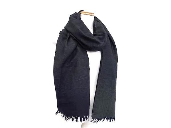 - 1円 ■極美品■ AGNONA アニオナ カシミヤ×シルク マフラー ストール ショール 防寒具 グリーン系×ネイビー系 FI8684