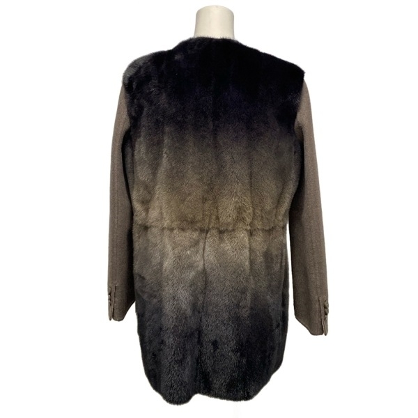 > フェンディ FENDI サイズ40 M FNF12M - ウール、ミンク グレーベージュ×黒 レディース 長袖/袖切り替え/冬 美品 コート