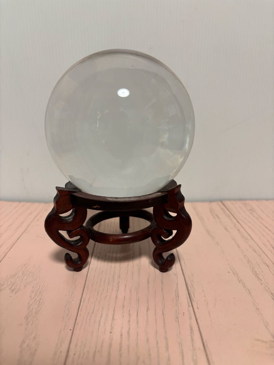 - ●(あ13) 水晶玉 置物 風水 パワーストーン インテリア 台座付 [60]