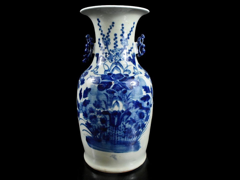 - 【雲】某コレクター買取品 中国古玩 唐物 染付花絵付耳付花瓶 飾壷 高さ42cm 古美術品(花器花入)DJ651 OTdftjh JBxcfde