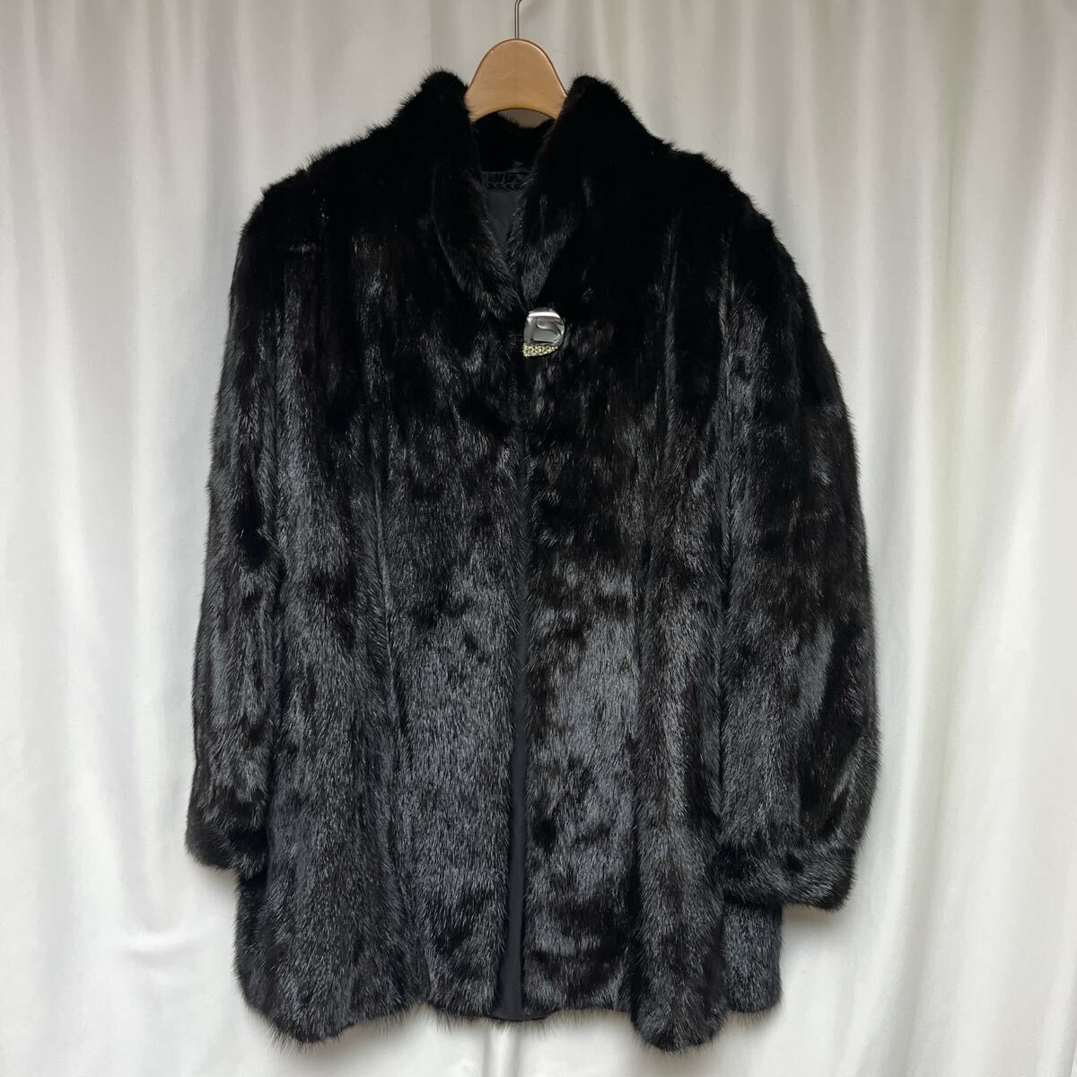 - CECILE 石ボタン付き ミンク ファー コート 黒 15