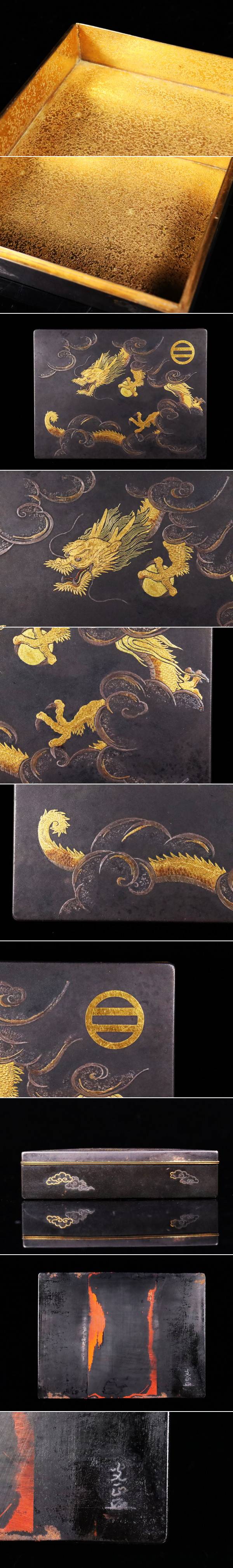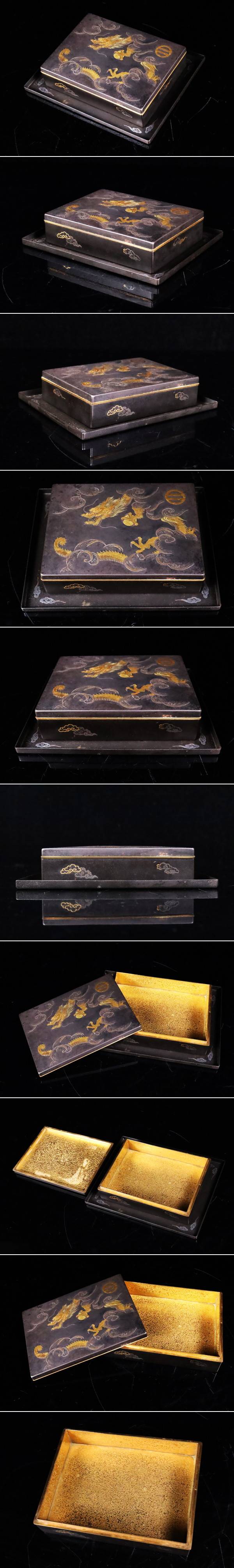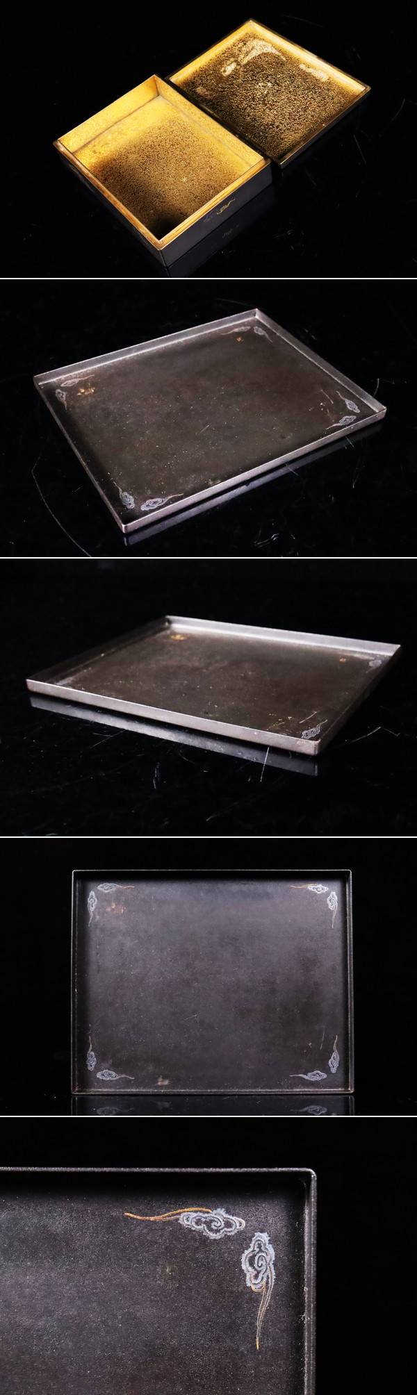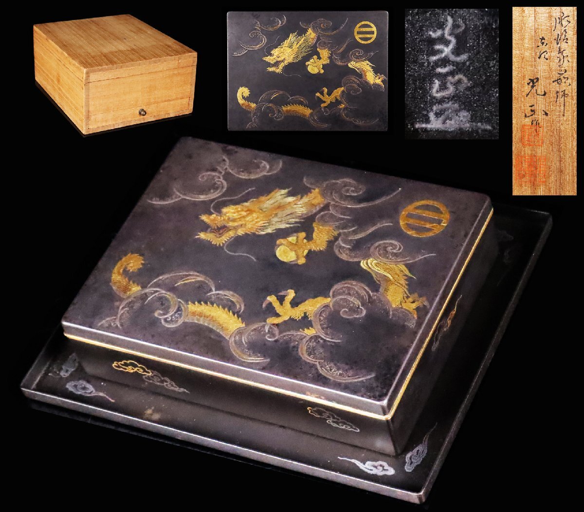 - 【ASAHI】特別出品!人間国宝 光米太平光正 鉄地金象嵌雲龍紋 小箱 煙草箱 喫煙具 共箱 希少 名品[612152wwp]