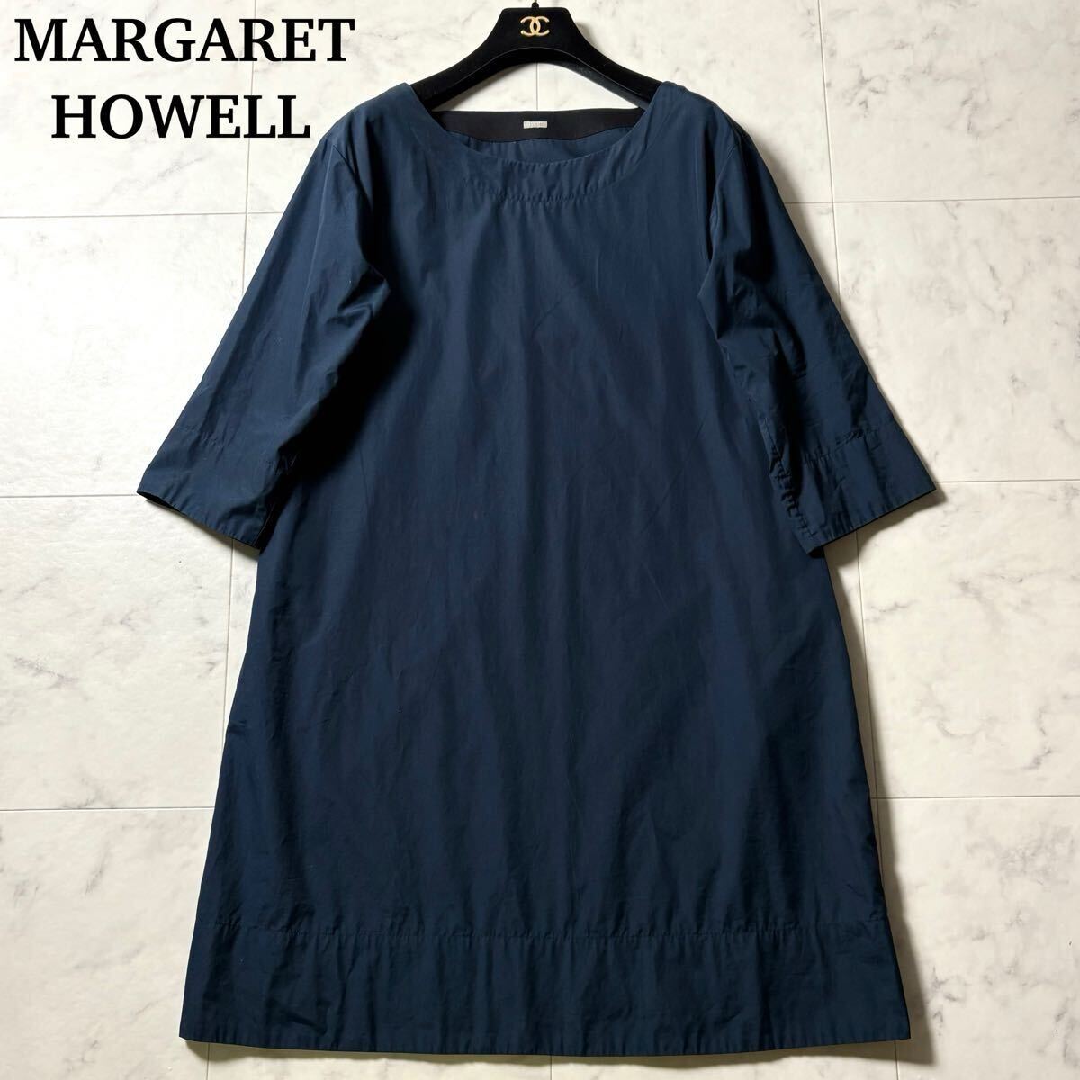 > MARGARET HOWELL マーガレットハウエル ワンピース コットン プルオーバー サイドポケット FREEサイズ ネイビー レディース