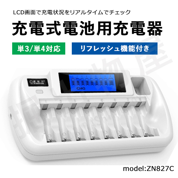 > iieco リフレッシュ機能付き 8本対応充電器 ZN827C 充電池 単3 単4 等にも対応 コード 06632