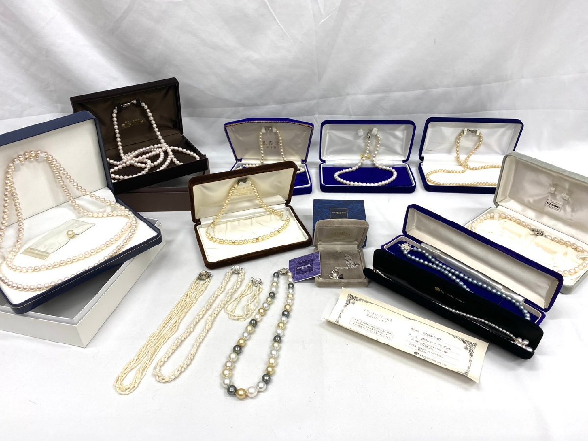 > ◇◇ 真珠製品14点 本真珠ネックレス ロングネックレス ペンダント 留具K18 SILVER 保証書付 ミキモト ブレスレット 淡水パール ◇◇S7782