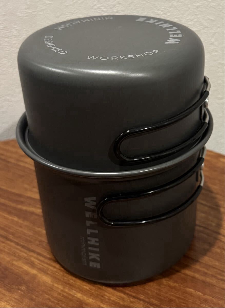 - ★未使用・新品/複数年保管品の、WELLHIKE社製アルミ・クッカーセット(2ピース/折りたたみハンドル付き)