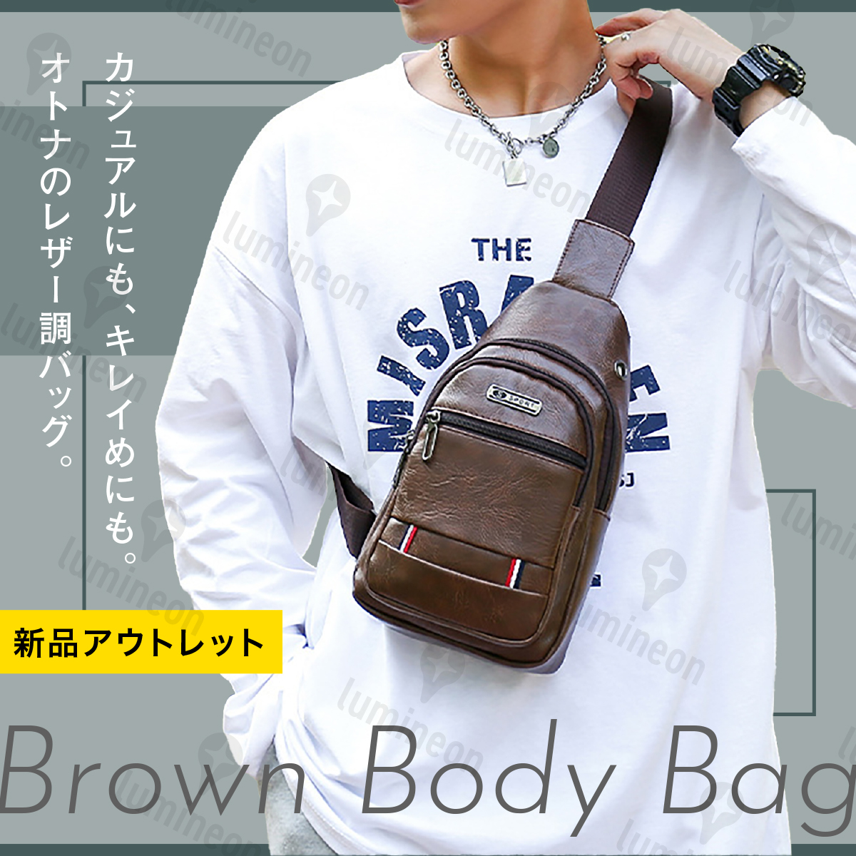 > 新品アウトレット ボディバッグ メンズ コード穴 多機能 撥水 大きめ 茶 レザー カバン ショルダー バッグ ブラウン 20代〜50代 g045bA 3