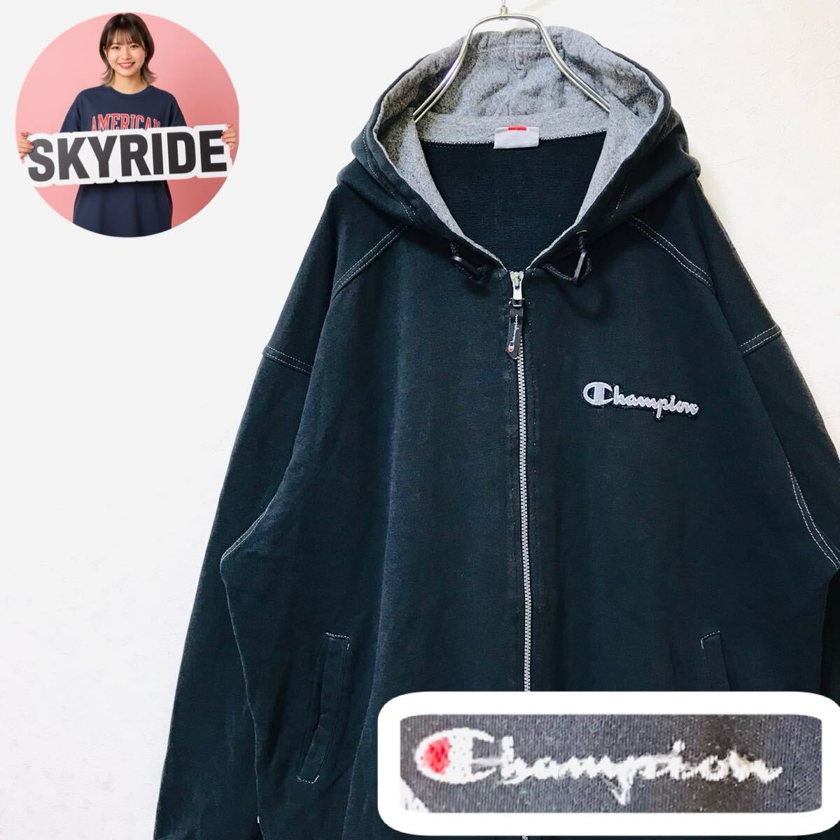 - Y2K Champion チャンピオン 2000s パーカー フルジップ 刺繍ロゴ ブラック L 裏起毛 コットン混 ビッグシルエット 通年着用可 #TT0397