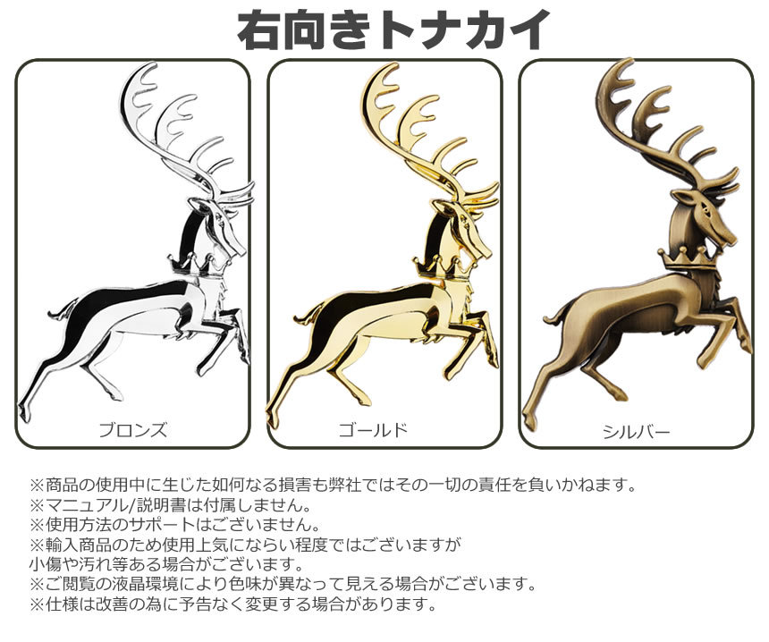 - 送料無料 トナカイ エンブレム 【左向き シルバー】 動物 可愛い 北欧 カーステッカー 立体 3D デカール バイク