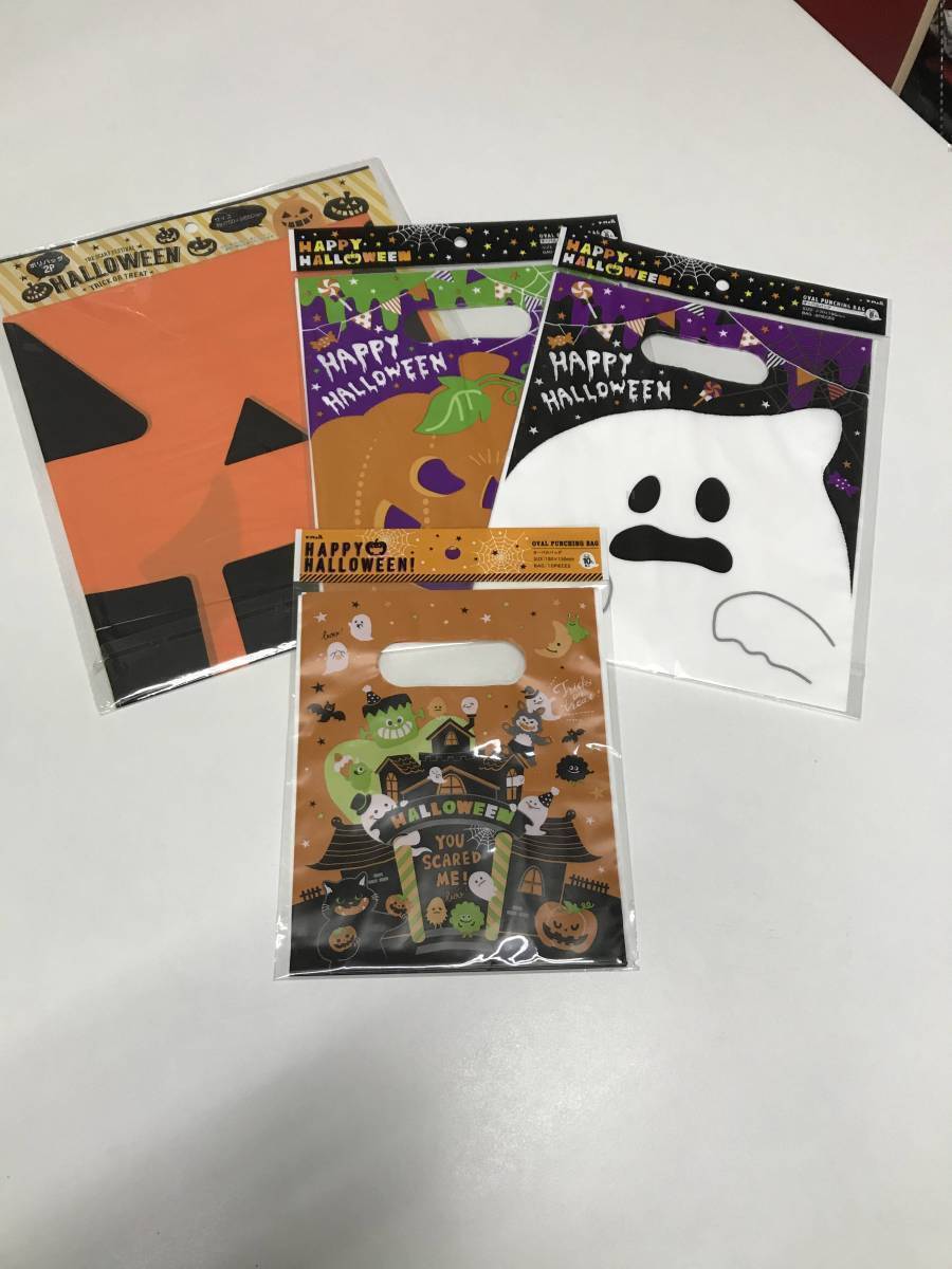 - 0012-01 現品のみ ハロウィン ビニール袋 ラッピング 手提げ 4種 セット HAPPY HALLOWEEN