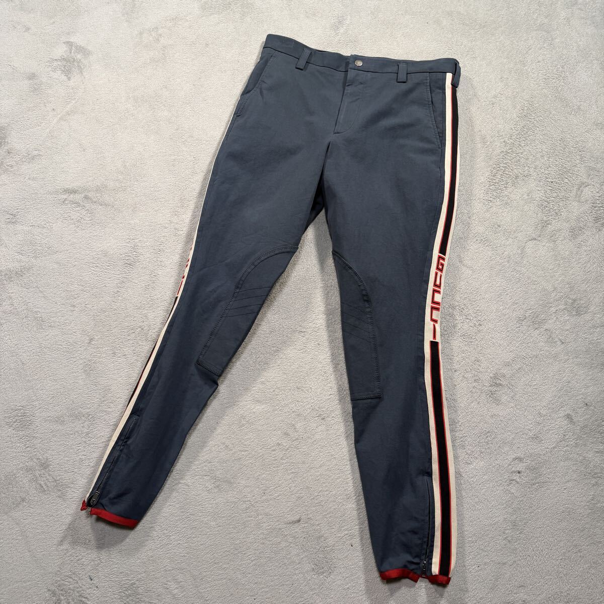 - 1円 極美品 GUCCI グッチ サイドライン ギャバジンパンツ 50サイズ テーパード 裾ジップ ネイビー系 くすみブルー 495695 14812