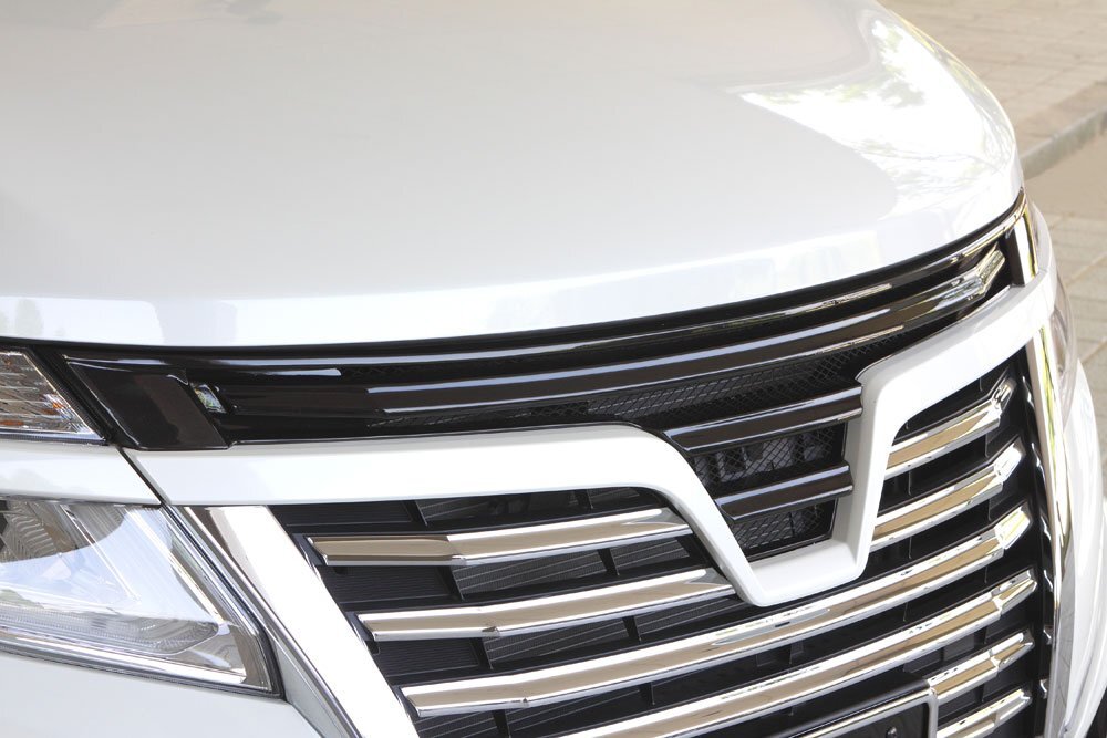 > M'z SPEED フロントグリル ホワイト (QAB) FRP エルグランド E52系 H26.4~R2.9 ハイウェイスター MC後 アラウンドモニター無車