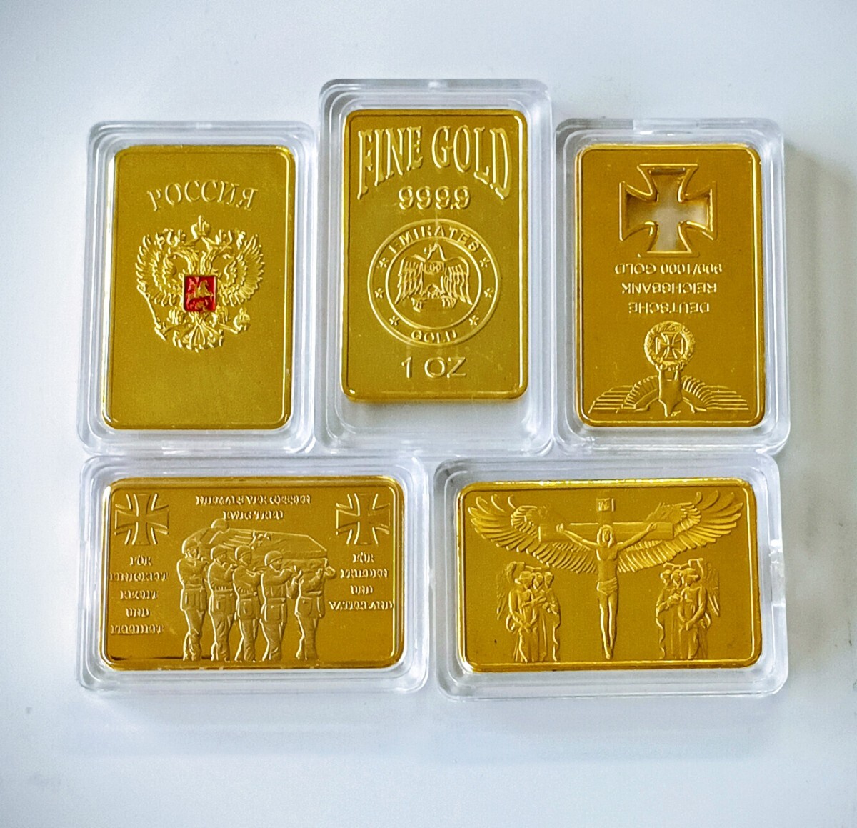 - 5枚セット ゴールドバー インゴット 金塊 金貨コイン 四角 各種
