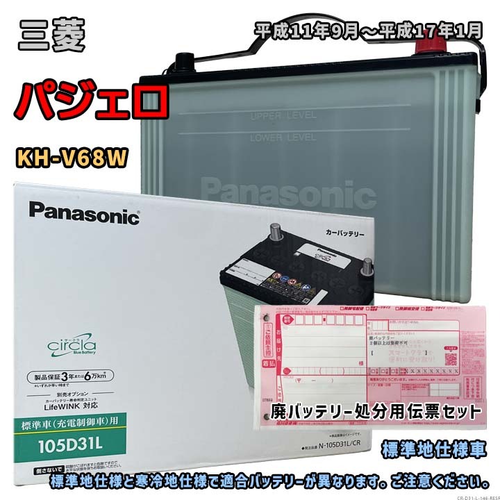- バッテリー パナソニック N-105D31L/CR 廃バッテリー回収サービス付 三菱 パジェロ KH-V68W 平成11年9月~平成17年1月 対応 D31L 互換 146