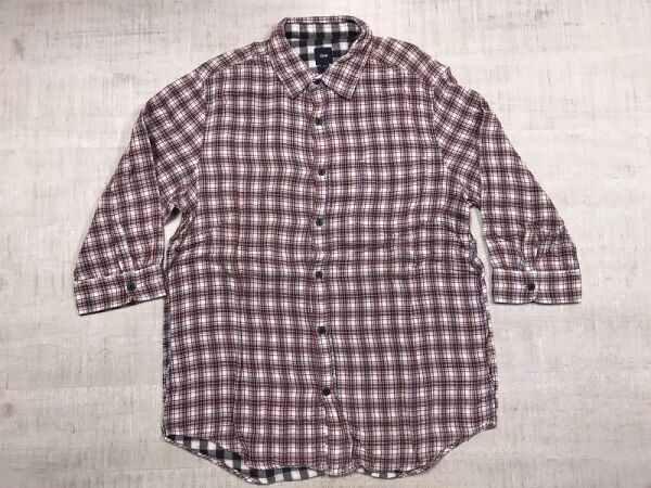 - ギャップ GAP オーセンティック アメカジ 古着 チェック 七分袖 二重織り ダブル・ガーゼ シャツ メンズ S 赤系