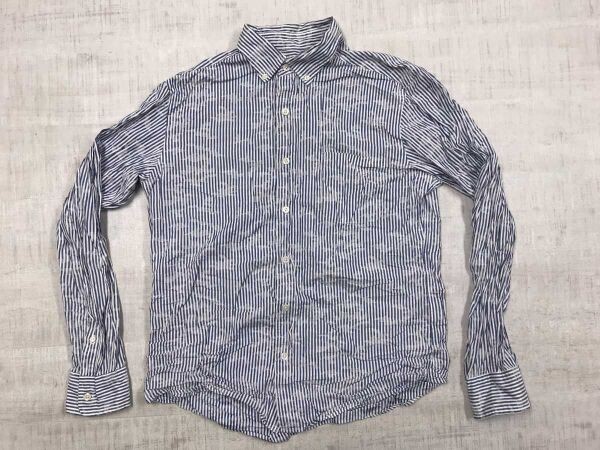 - ユナイテッドアローズ UNITED ARROWS green label relaxing ストライプ×迷彩カモフラ 総柄 長袖 ドレス シャツ メンズ 綿100% L 青白