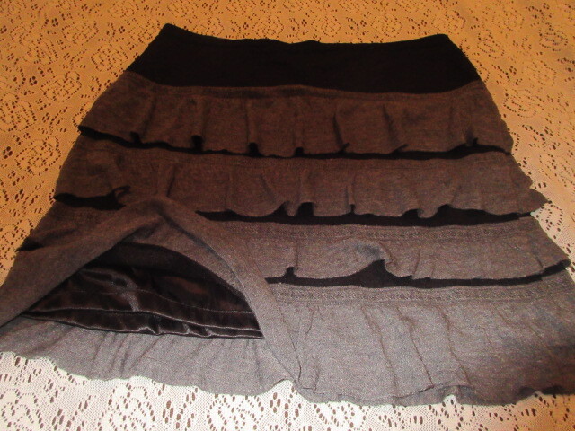 - A')■【・・・】■サッと体形カバー重ね着 あったかおしりカバー ■楽々ウエストゴム入り!黒&グレー段々フリルミニスカート■