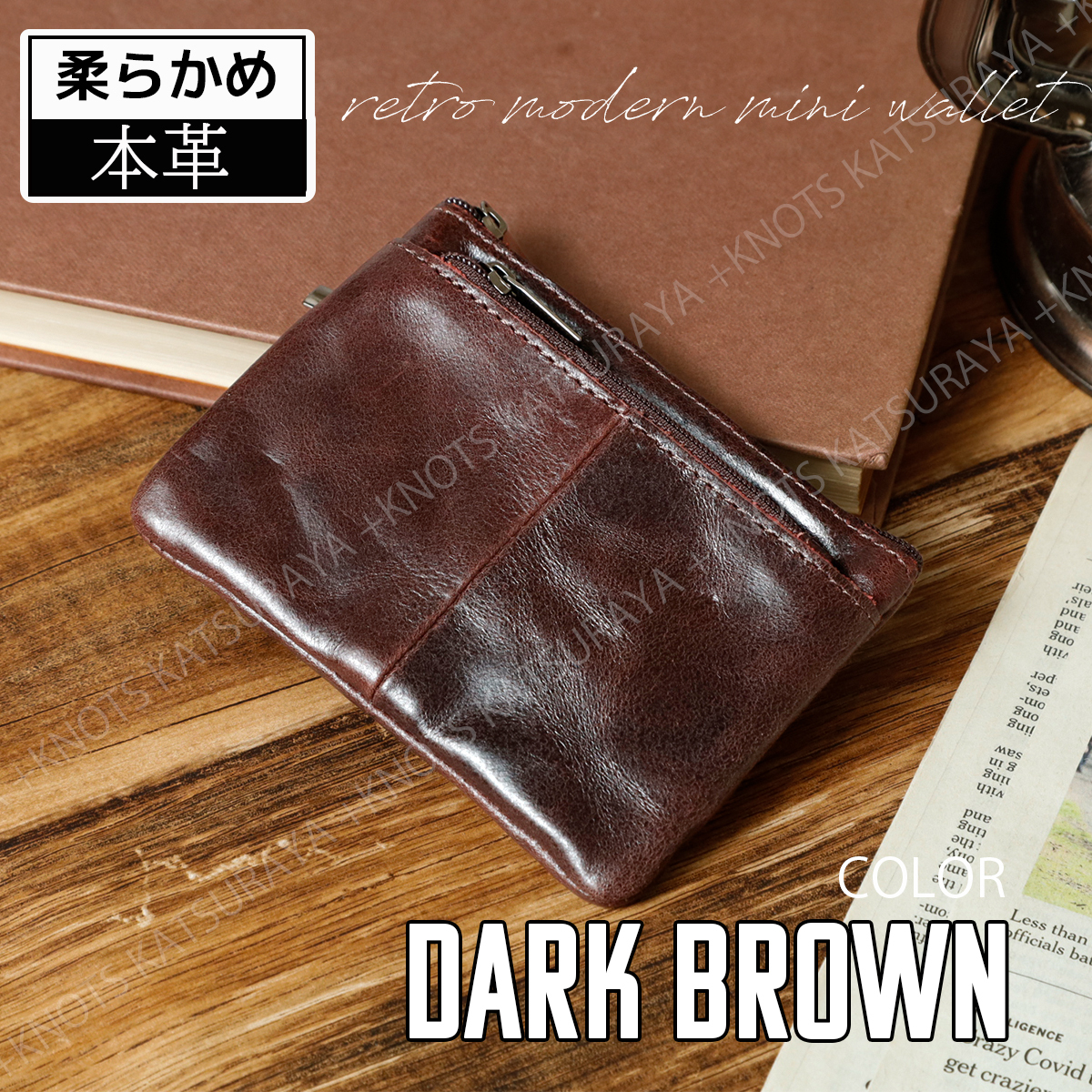 - 本革 レトロ ミニ財布★Dブラウン★レディース メンズ 小さい カードケース 小銭入れ 薄い コンパクト 軽い小型 牛革レザー キーケースa339