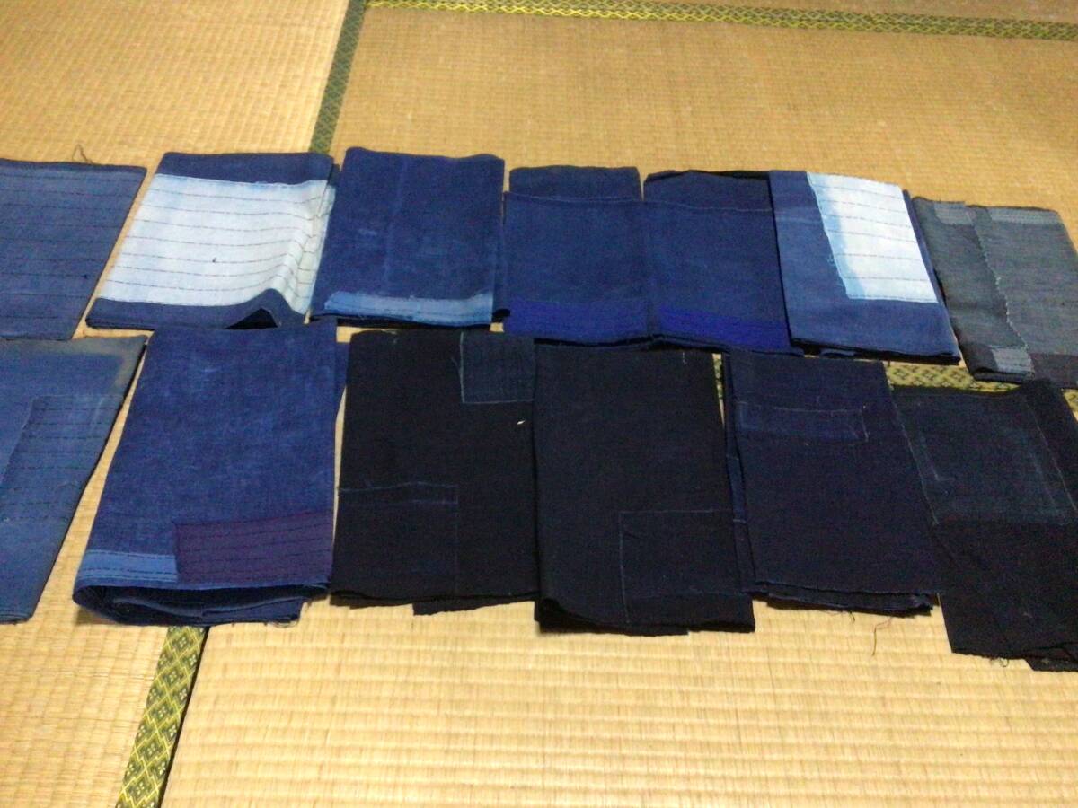 - NO650,はなだの古布::藍、浅葱木綿襤褸はぎれ13枚(1,1キロ)
