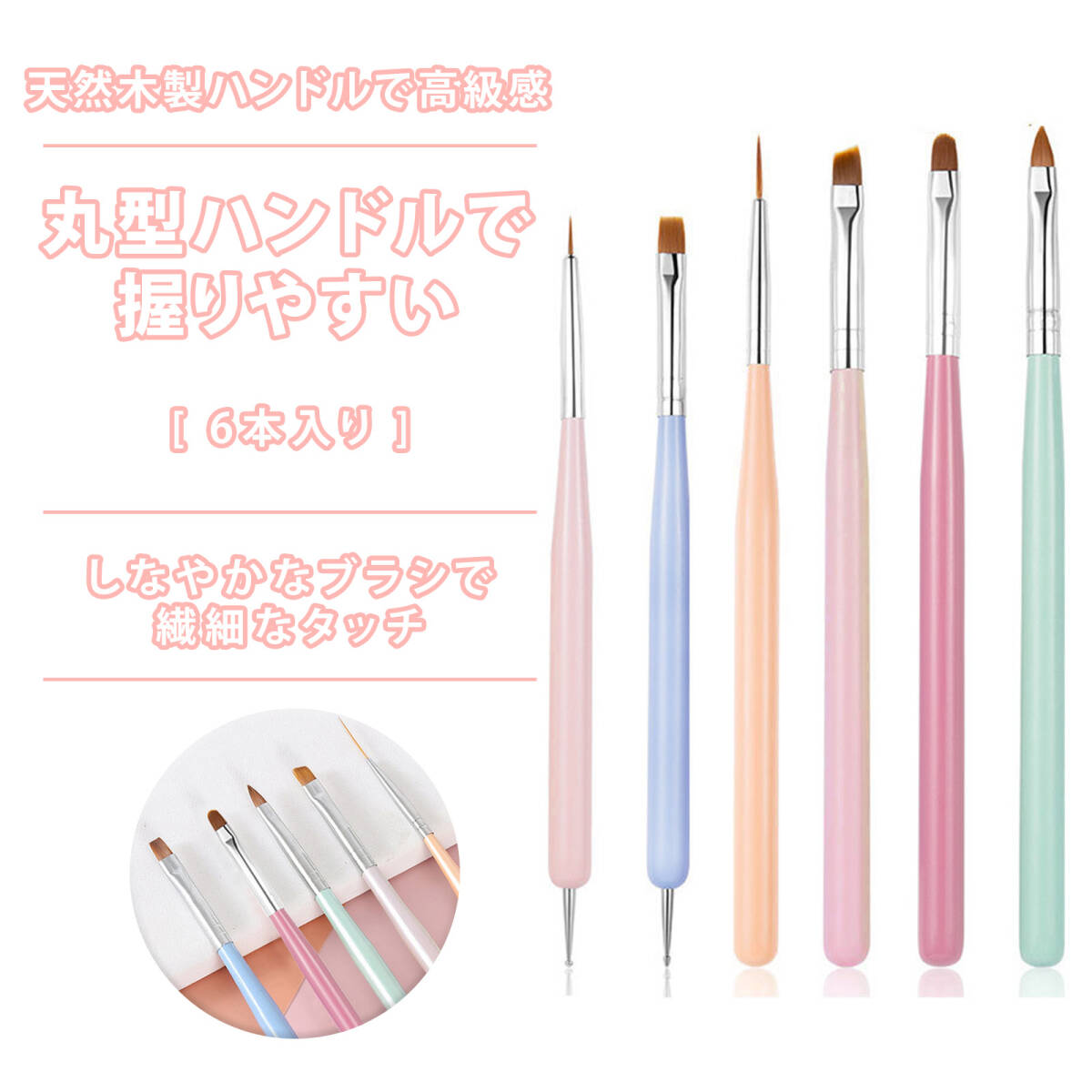 - 【6 本入り】ネイル 筆 ネイルブラシ ジェルネイル 筆 カラフルネイルブラシセット ダブルヘッド 木製ハンドル プロ用&初心者用 ;J7658;