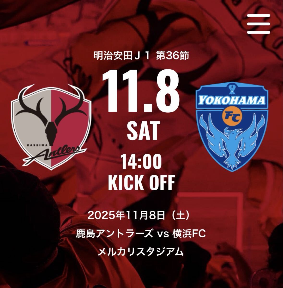 - 【2枚】2025年11月8日(土)鹿島アントラーズ vs 横浜FCメルカリスタジアム カテゴリー4