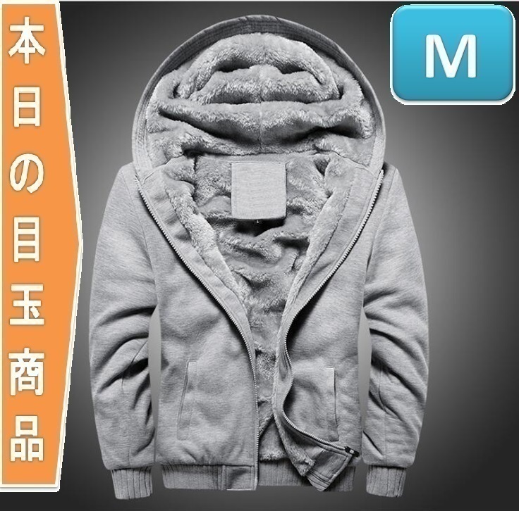 > 人気 【173】 ボアスウェットパーカー グレー M 裏起毛 ジップアップ パーカー ボア スウェットパーカー フード付き