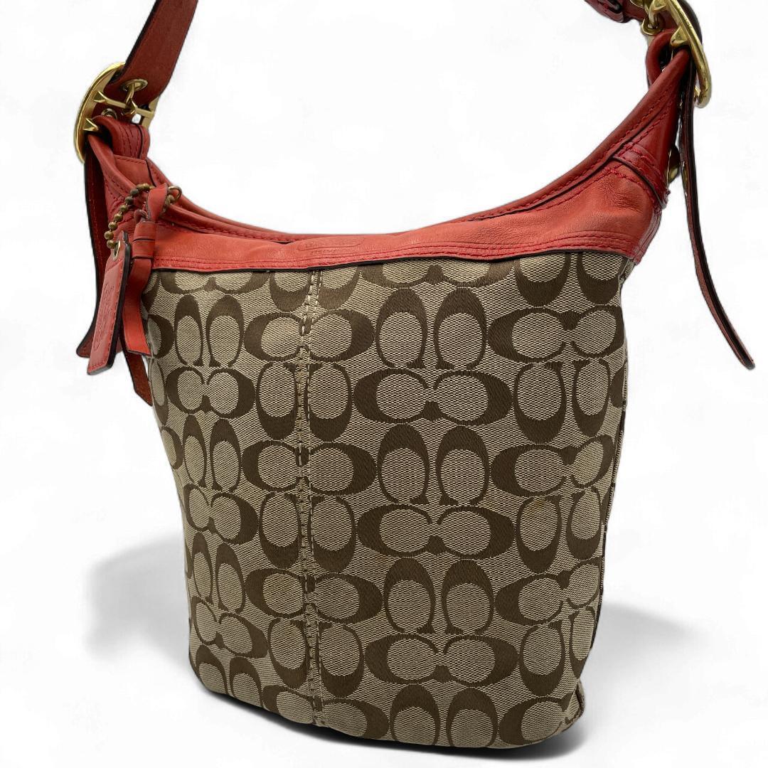 > 良品 COACH ショルダーバッグ キャンバス レザー ブラウン シグネチャー