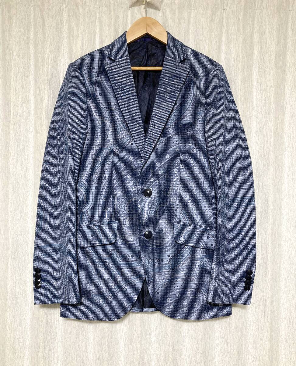 - 美品☆[ETRO] ペイズリー柄 シアサッカー テーラードジャケット 44 ブルー イタリア製 エトロ