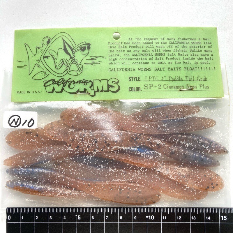 - 815773 新品 カリフォルニアワーム パドルテールグラブ 4インチ 10本 #シナモンネオンプラス CALIFORNIA WORM オールド品