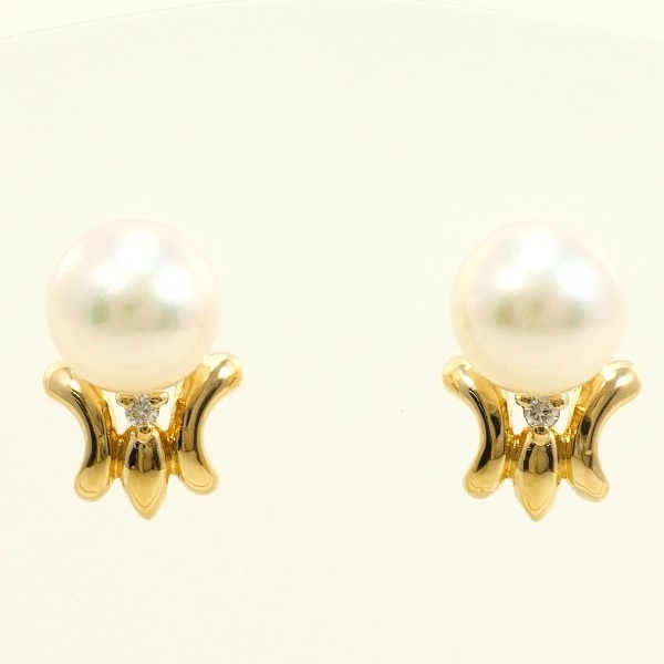 K18YG ピアス パール (真珠) ダイヤ 0.01×2 総重量約2.2g 中古 美品 送料無料☆0315