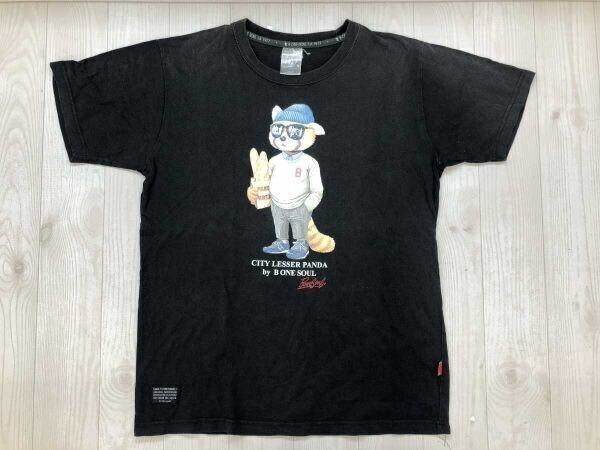 - ビーワンソウル b-one-soul ダックデュード DUCKDUDE ストリート シティーボーイ レッサーパンダ プリント 半袖Tシャツ メンズ L 黒