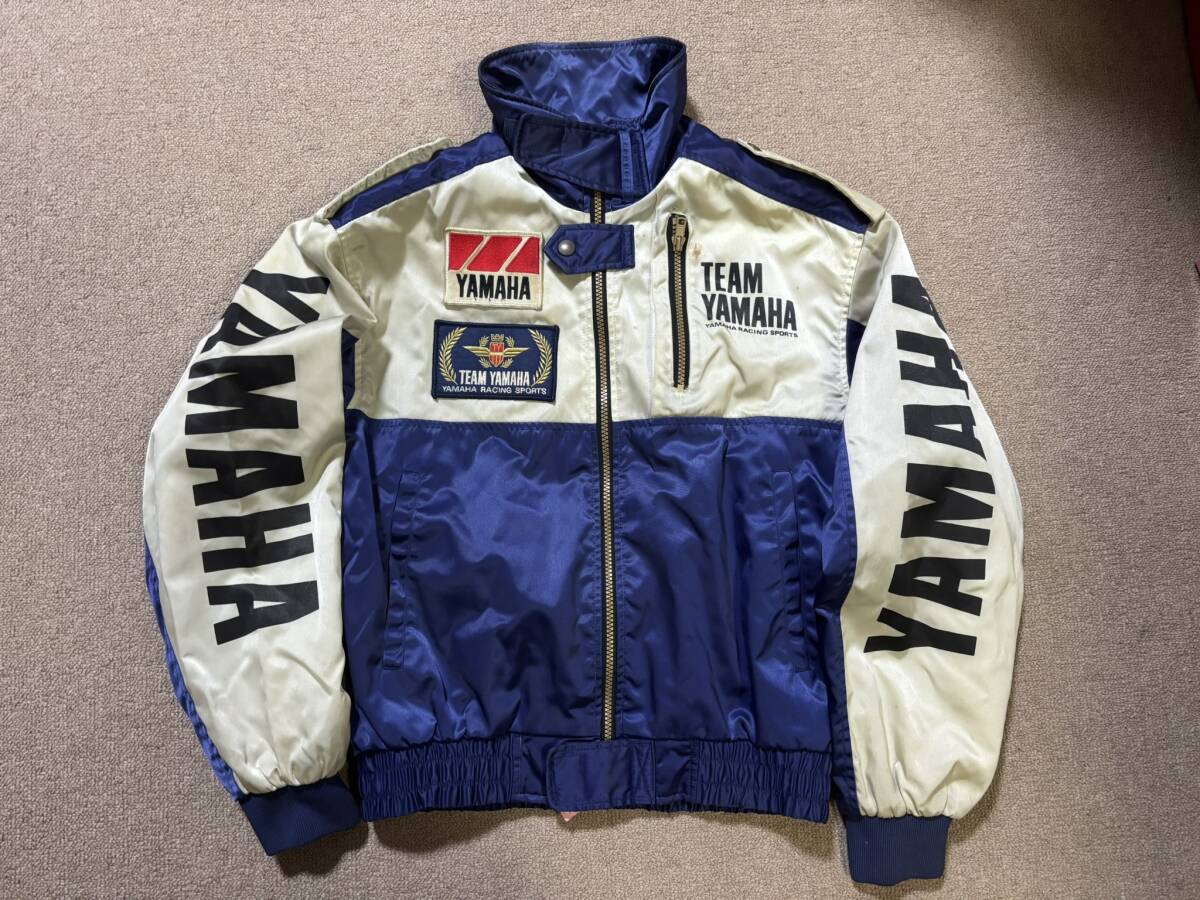 > ビンテージ TEAM YAMAHA RACING SPORTS チームヤマハ ヤマハ レーシングチーム ジャケット ジャンパー 当時物 M 青 白 ブルー ホワイト/QH