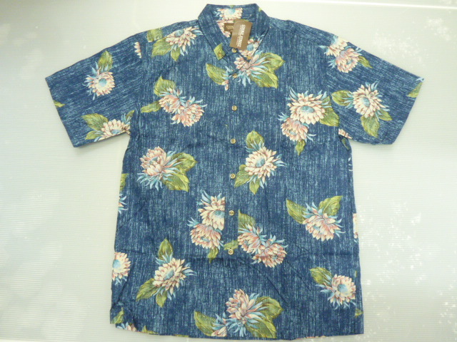 - r453C 新品タグ付 Cooke Street クックストリート 半袖 アロハシャツ Sサイズ 総柄 花柄 ネイビー ハワイアンシャツ ポケット付
