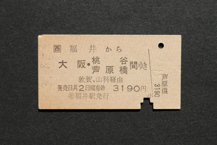 - JR西 乗車券 福井から 大阪・桃谷 芦原橋間ゆき 3190円