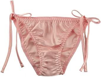 - [ラ・ポーム] サテン生地 光沢感 シルクの様な艶やかさ 脇ヒモフルバックショーツ 日本製PINK